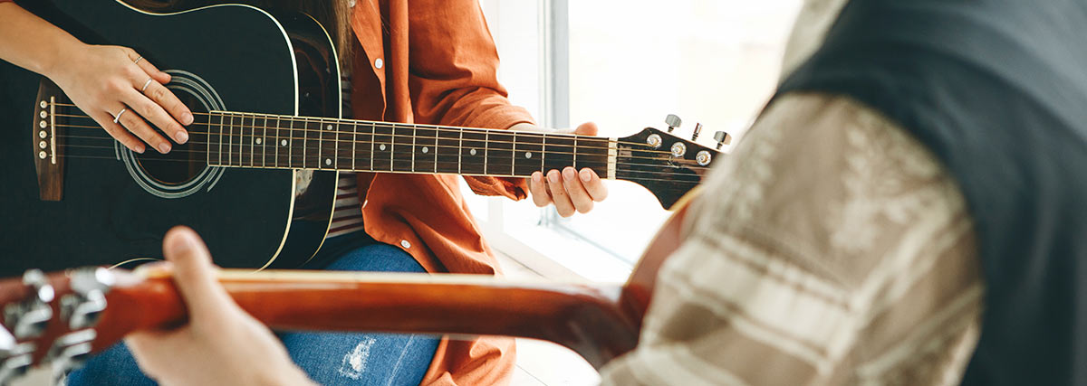 You may also begin learning how to tune the guitar, how to use a plectrum if appropriate, and how to practise efficiently between lessons.